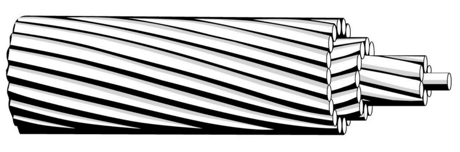 ACSR conductors are formed by several wires of aluminium and galvanized steel, stranded in concentric layers.